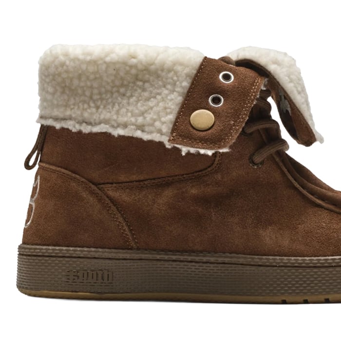 モカシンのような独特のルックスを持つスケートシューズで、内側にボア(ファー)を配したシアリング仕様が特徴です。