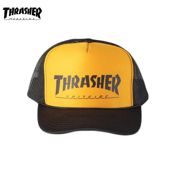 THRASHER スラッシャー THxSP Trucker Black/Gold/Black キャップ 帽子 メッシュ トラッカー スケボー SK8 ストリート