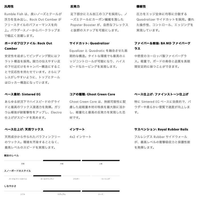 Rumble Fish は、SALOMONで最も人気のパウダー&フリースタイルデザインを融合させ、あらゆるライディングを 1 本で可能にした女性用アイテム。