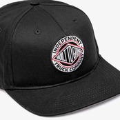 フロントにワッペンが付いたINDEPENDENTのスナップバックキャップ