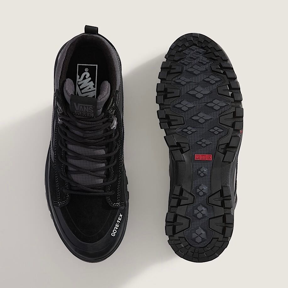 SK8-HI(スケートハイ)がGORE-TEX®の防水透湿性、インシュレーションパッケージ、全天候型All-Tracラバーコンパウンドのアウトソールを組み合わせて、スタイリッシュかつ堅牢な足元を完成させます。